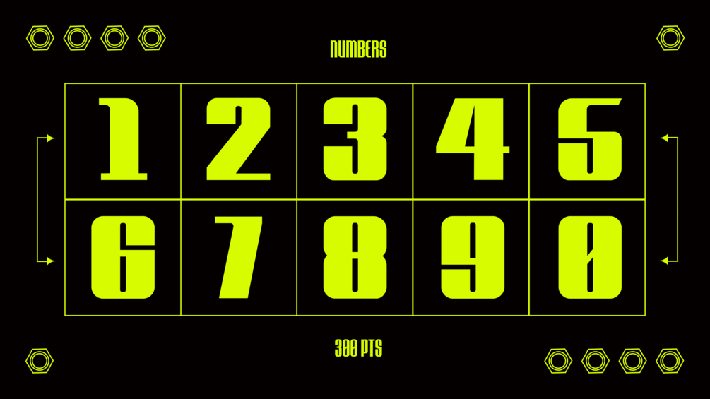 Signalspark. is inspired by logotypes found in synthesizers. The typeface is best for posters, branding and headline use. It has 3 weights with 9 styles and 416 glyphs. It includes punctuations, numbers, language support for Basic Latin, Western European, Central European, and South Eastern European. Other features included are discretionary ligatures, standard ligatures and alternate glyphs for the letters I and O. Backslant and Obliques are slanted at 20 Degrees.